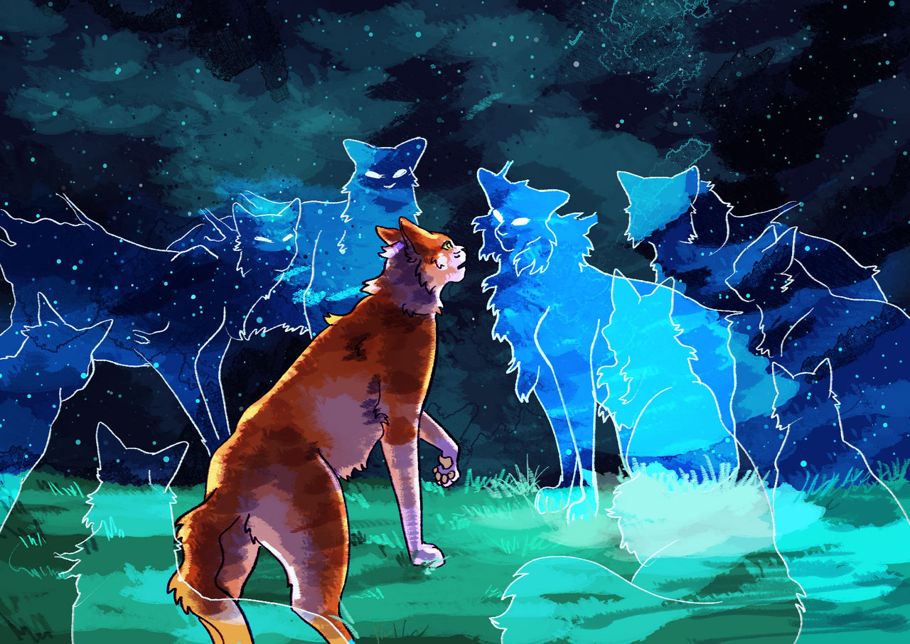 The leader is the head of the Clan. They make all of the important decisions regarding how the Clan is to be run. After the death, demotion, or retirement of the previous leader, the deputy (or another cat chosen by StarClan, the medicine cat, or consensus from the Clan if there is no deputy) becomes the new leader. In order to officially become leader, the deputy must journey to the Moonstone or Moonpool and meet with StarClan in their dreams. The new leader will find themselves surrounded by many StarClan spirits, and one by one, nine spirits will approach and grant the leader a life. The spirit touches their nose to the new leader’s and announces the life they are giving and the gift or trait they are giving with it, the wording isn’t always exact but usually goes along the lines of “With this life, I give you [trait]. Use it well for [description of how the trait will help the leader’s Clan].” The receiving of a life is painful, with the level and feeling of the pain varying from life to life.
