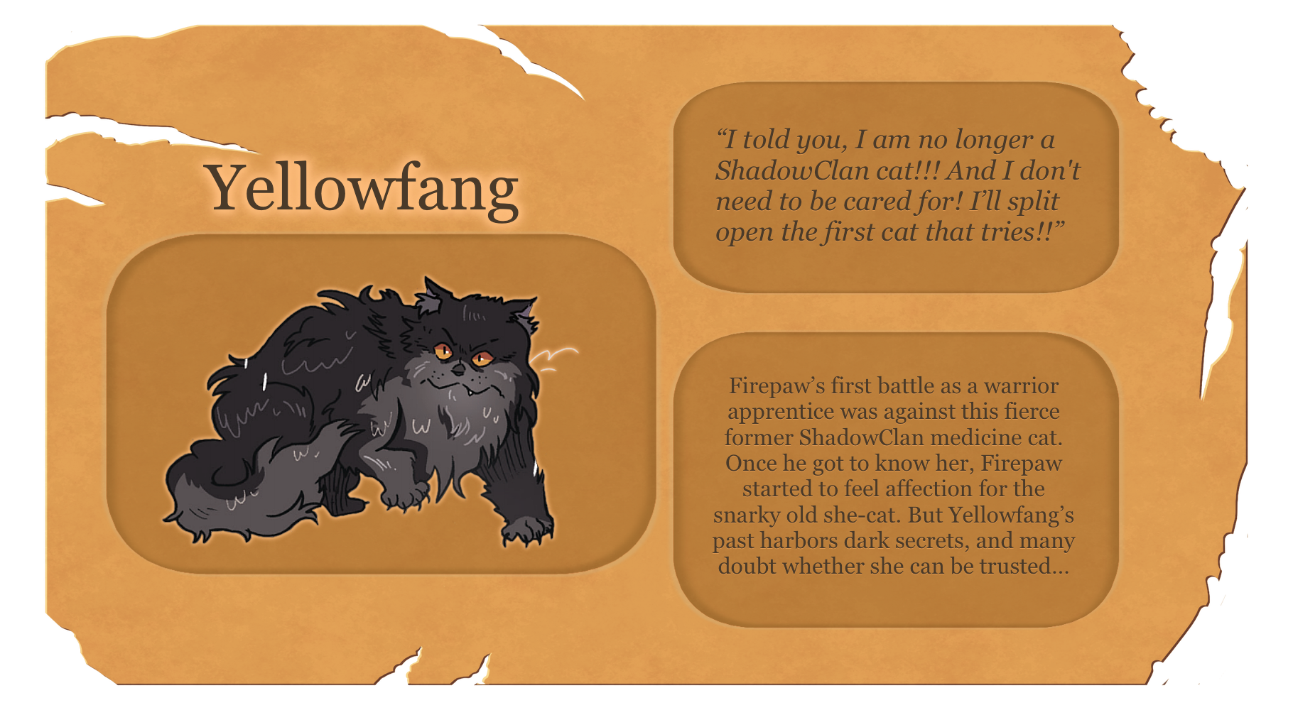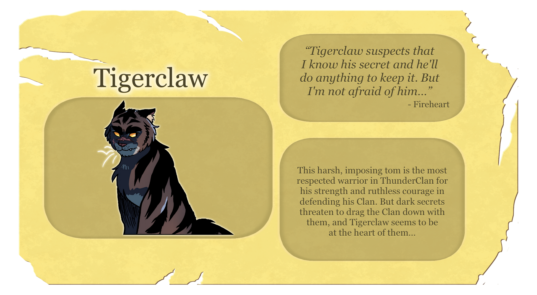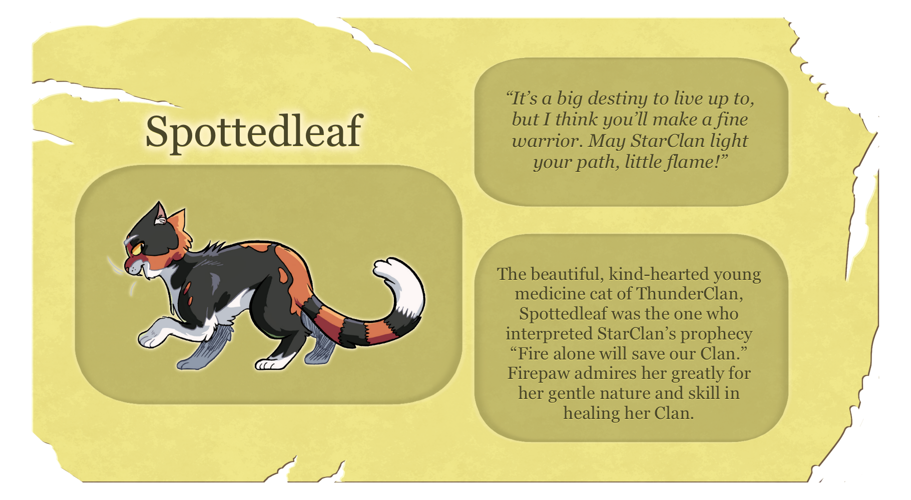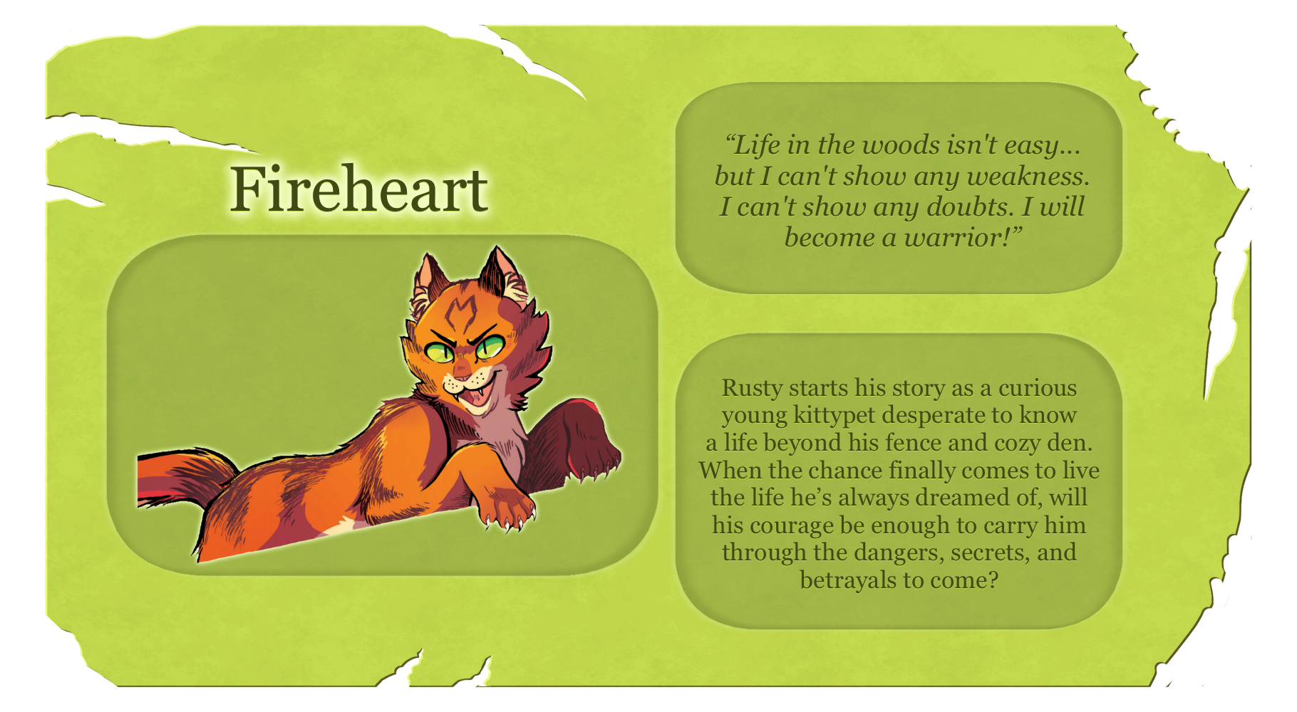 We know you’re all excited for the upcoming graphic novel adaptation of The Prophecies Begin. So far, we’ve shown you a few early pages, and there may be even more to come. But whether you’re brand new to Warriors, or a longtime fan who just needs to brush up on their The Prophecies Begin knowledge, we’ve got a treat in store for you – we’re introducing you to some of the principal characters of the upcoming graphic novel! Get to know their personality, story, and design using the character infosheets below before the graphic novel releases this July!