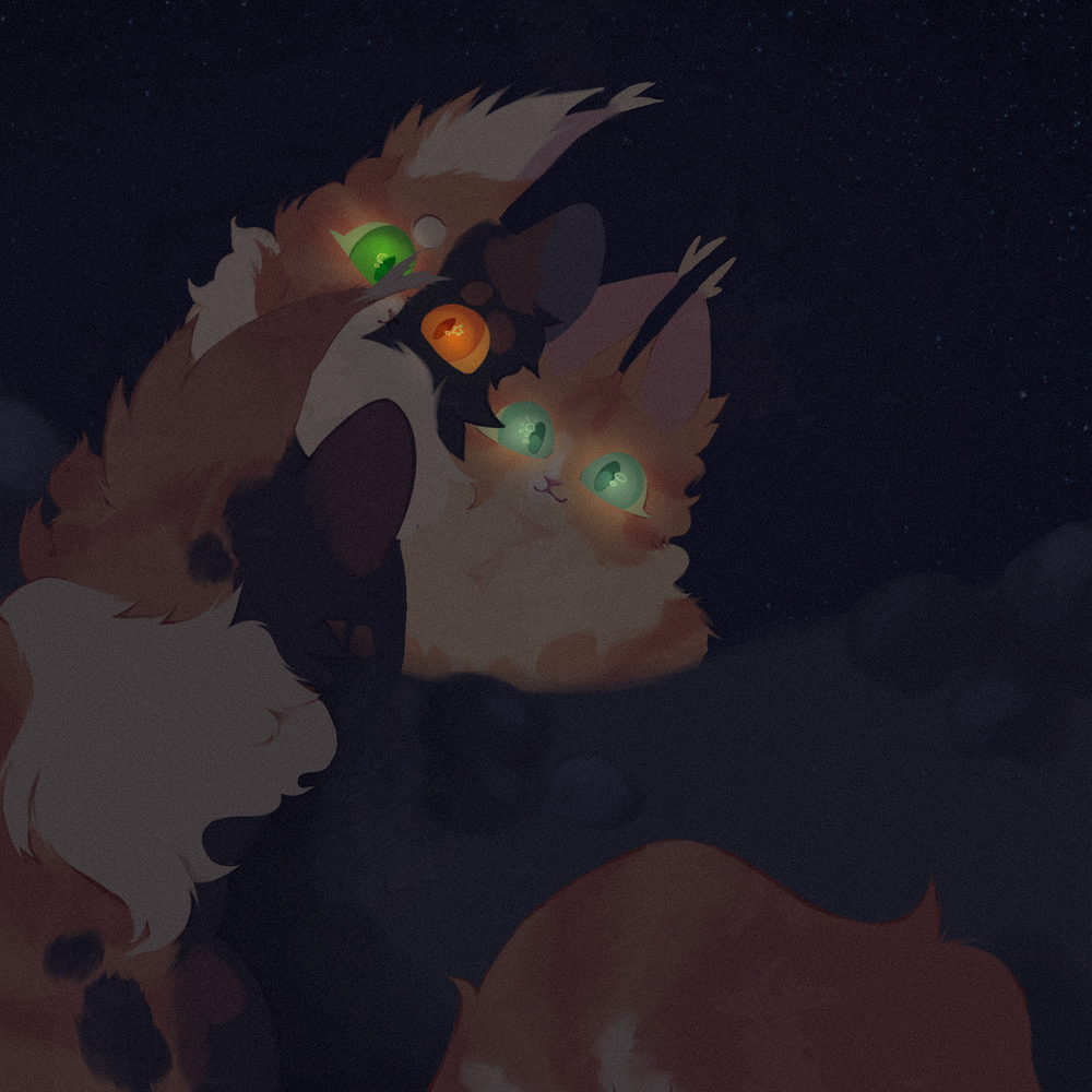 In Hidden Moon, Moonpaw is troubled by dreams of the orange cat, whose voice took on a malevolent edge toward the end of The Elders’ Quest. Her guilt at being the kit who survived, as well as the unexplained “disappearance” of StarClan has her wondering if her sibling, whose name she learns later on in this book, might somehow be “stranded” between life and the afterlife.