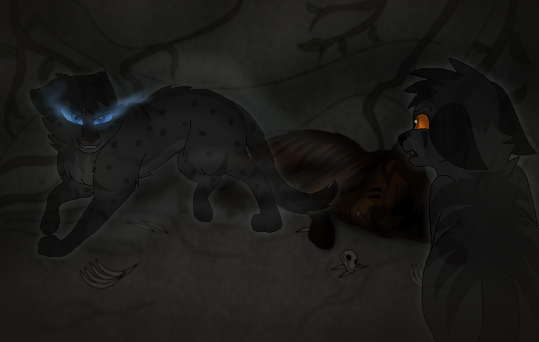 A particularly creepy moment showcasing Ashfur’s twisted use of his powers as a spirit comes from this scene towards the end of Darkness Within. As Ashfur attempts to manipulate Shadowsight into setting him free, he convinces him by showing him the spirits he has trapped within his power by apparently allowing the spirits to assume brief control of Bramblestar’s body. First Spiresight, then Bramblestar, with Spiresight’s spirit turning the eyes of Bramblestar’s body from amber to yellow and his body becoming hunched in terror, and Bramblestar’s spirit giving his body the noble bearing it had held when its true owner had occupied it. The horror of seeing Bramblestar’s battered and beaten body contorted in so many ways, seeing Spiresight’s terror and his eyes glowing unnaturally from Bramblestar’s face, and the uncertainty of whether what he was seeing was the truth, all left Shadowsight floundering in fear and uncertainty of which was the right path to take.